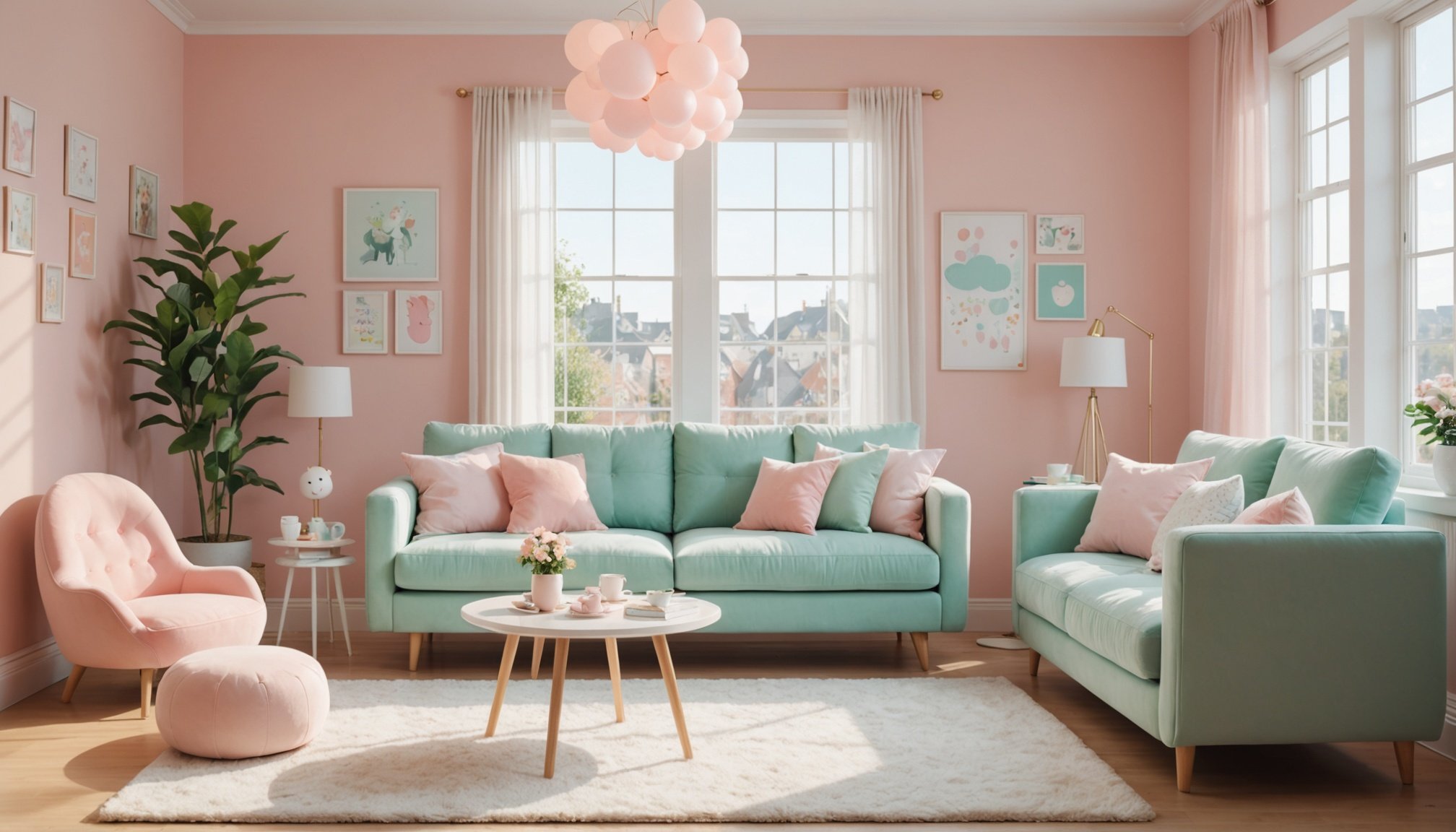 - Pastel Dreams – Soft pinks, lavender, mint green, and cream create a dreamy, cloud-like atmosphere